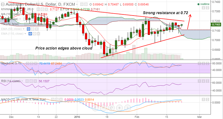 - On the downside immediate support is seen at 0.7152 (5-DMA) and further below at 0.7133 (Feb 18th lows).