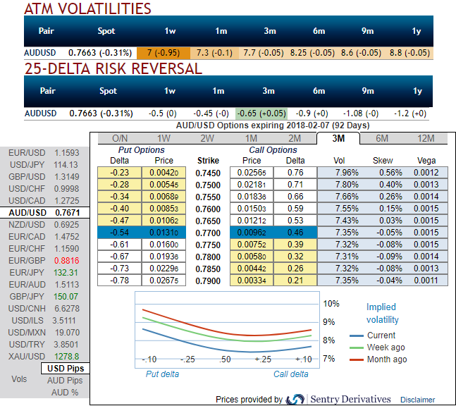 OTC outlook: Please be noted that the positively skewed IVs of 3m tenors signify the hedgers’ interests to bid OTM put strikes upto 0.7450 levels (refer above diagram). While bearish neutral delta risk reversal divulges the interests in hedging activities for downside risks remains intact amid mild upswings.