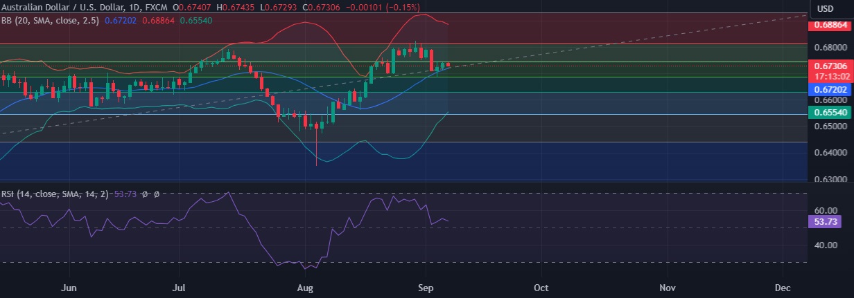 •At GMT 03:44, the pair was trading down 0.12 percent at 0.6733 after reaching daily high at 0.6749.