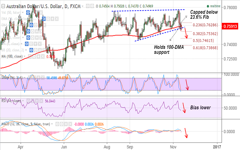 Recommendation: Good to go short on breakout below 100-DMA at 0.7588, SL: 0.7630, TP: 0.7535/ 0.75