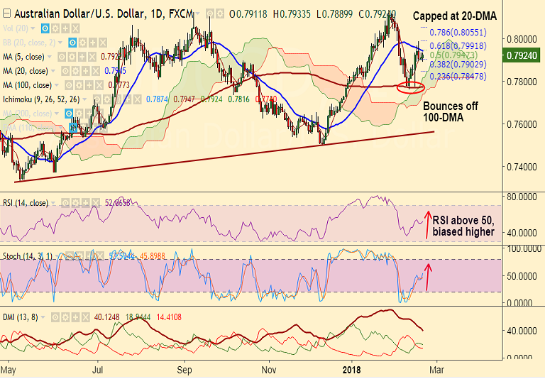 Resistance levels - 0.7945 (20-DMA), 0.7988 (Feb 16 high), 0.8055 (78.6% Fib)