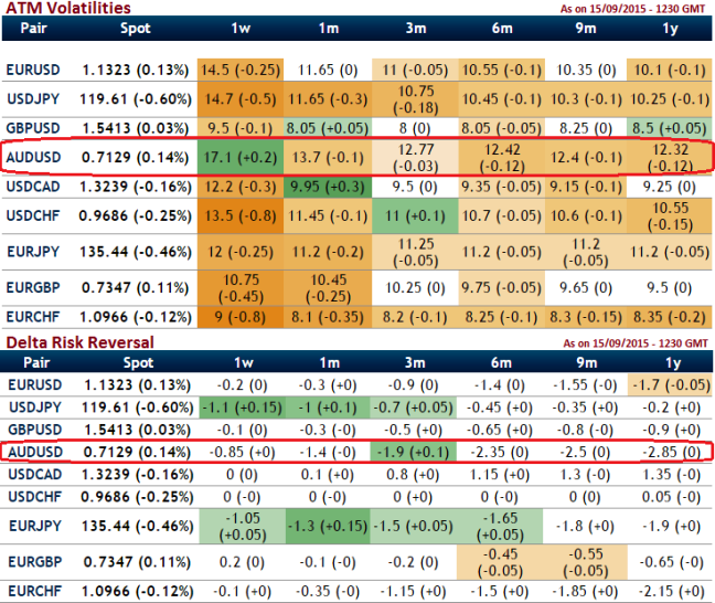 The prevailing implied volatility rates for AUD/USD ATM 1M and 1W contracts is 17 and 13.7% respectively, while delta risk reversal for 3M to 6M contracts is exceeding -2 which means downside sentiments are piling up. As the risk appetite varies from different investors to different traders, we've customized our formulation of strategies for such varied circumstances.