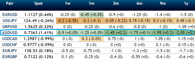 From the nutshell, 25-delta risk of reversals of AUDUSD the most expensive pair to be hedged for downside risks as it indicates puts have been over priced. As it showed the highest negative values indicate puts are more expensive than calls (downside protection is relatively more expensive).