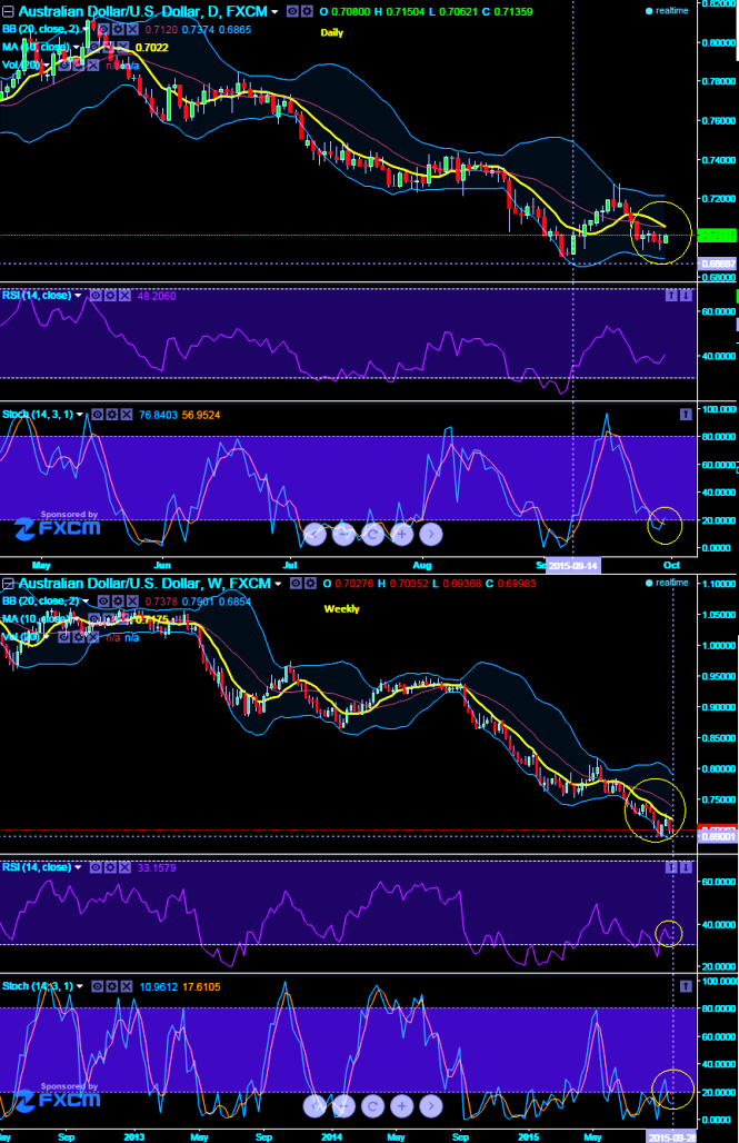 We would like to be dare devils in predicting bearish trend for AUDUSD in future, however short term rallies are on the cards. On weekly charts, prices remained well below moving average curve, while stochastic curve has reached below 20 but not signs of %K line crossover. RSI is also converging downwards with every weekly price drops. Observe circled areas for bearish indications, however these can never be studied in an isolation. Overall, momentum indicators are suggesting the prevailing downtrend looks rigorous, the major trend has been downtrend and initiate the below hedging recommendations in order to safeguard your currency exposure.