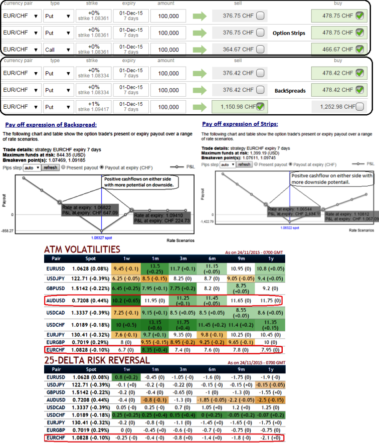 From the nutshell, 25-delta risk of reversals of EUR/CHF the second most expensive pair to be hedged for downside risks after AUDUSD as it indicates puts have been over priced.