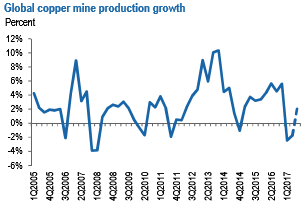 Despite most of the major supply-related problems being largely resolved, supply continued to dominate copper market headlines in 2Q.With 2Q production reports almost complete, we now estimate that global copper mine production contracted 2.3% yoy in 1H (refer above chart).