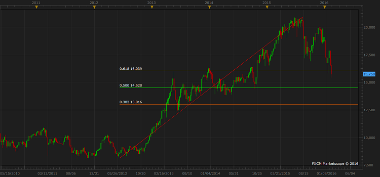 Technically speaking, Nikkei has cleared 61.8% Fibonacci level around 16,000, when drawn on the Bull Run, from mid-2012 to August 2015. Next level lying at 14500 area. We expect Nikkei to breach and bounce in the region.