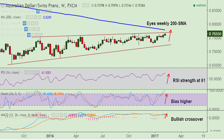 - AUD/CHF spiked to hit 0.7666, levels last seen in April 2015. Bias higher.