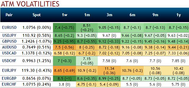 Buy GBPUSD 3m1m risk reversal strikes 1.26/1.21: we buy 3m risk reversals again that favors bearish sentiments since the GBPUSD’s implied volatility is perceived to be rising among the major currency counterparts (3m ATM contracts spiking above 9.12% in recent times.