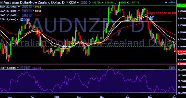 We prefer to take short position in AUD/NZD only below 1.0622, stop loss 1.0738 and target 1.0569/ 1.0496 levels.