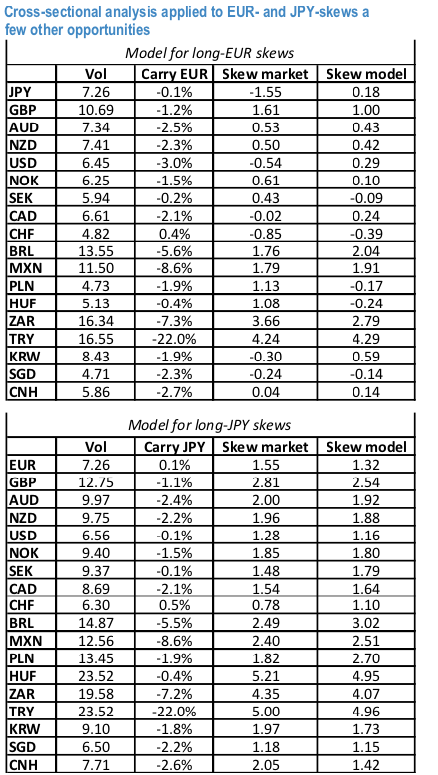 A few other opportunities that stand out from this perspective could be the cheap AUD and NZD riskies against the USD or the cheap SEK risk-reversal against the JPY.