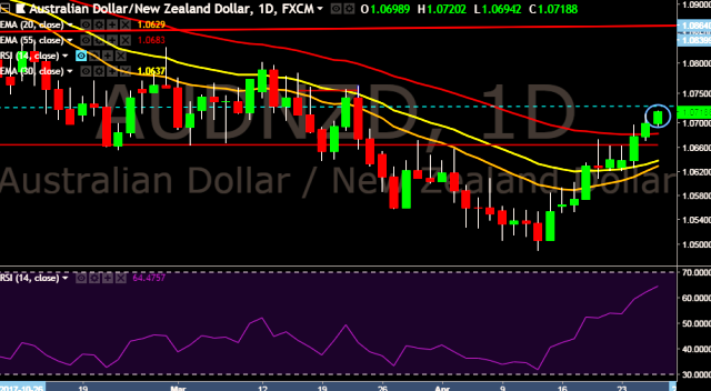 - Pair made intraday high at 1.0720 and low at 1.0694 marks.