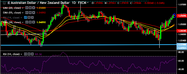 - AUD/NZD is currently trading around 1.0588 marks.