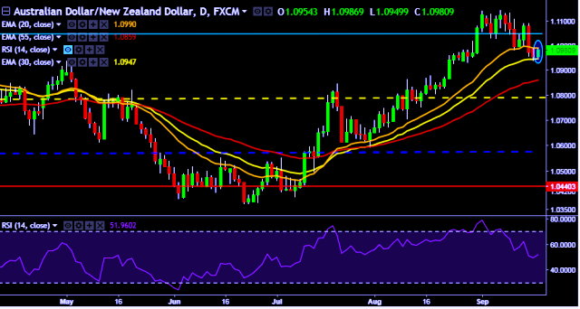 - Pair made intraday high at 1.0986 and low at 1.0949 marks.