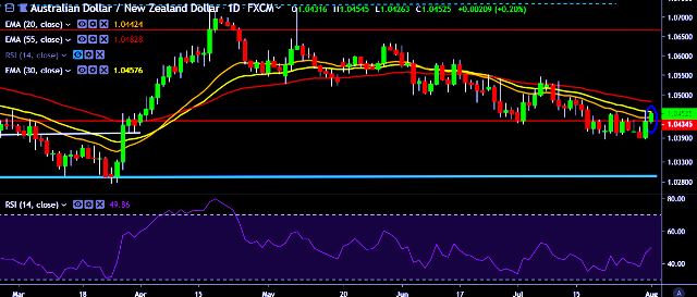 - AUD/NZD is currently trading around 1.0452 marks.