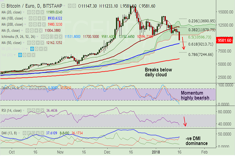 - BTC/EUR has shown a decisive break below daily Ichimoku cloud, bias lower.