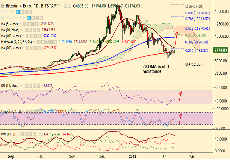 Resistance levels - 7483 (23.6% Fib retrace of 16457 to 4712 fall), 7500 (Feb 4 high), 7583 (20-DMA)