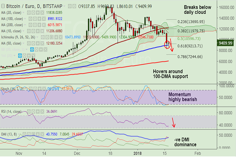 Support levels - 8981 (100-DMA), 7244 (78.6% Fib retrace of 4736 to 164557 rally), 6015 (200-DMA)