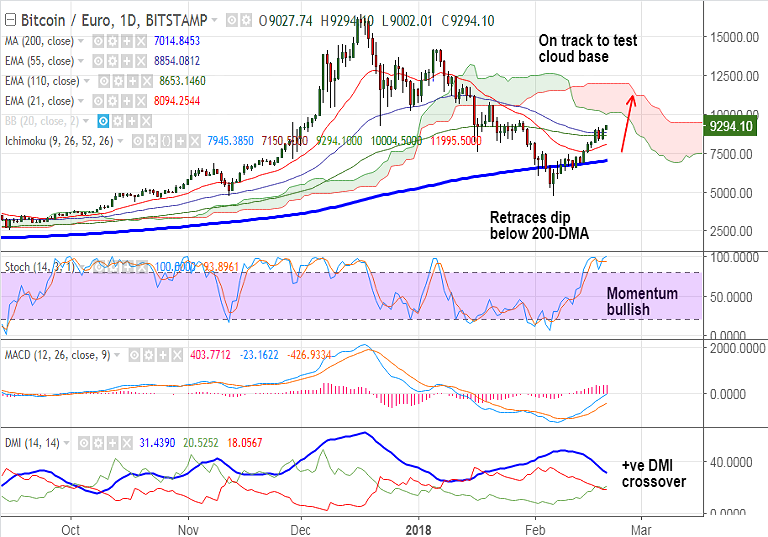 - BTC/EUR upside is gaining traction, we now see scope for test of cloud base at 10000 levels.