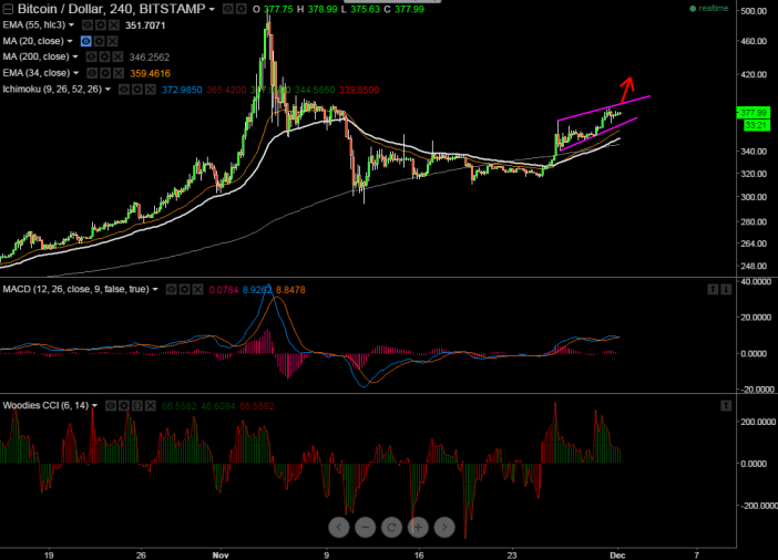 BTC/USD has made a high of $383 and slightly retreated from that level. It is currently trading around $376.