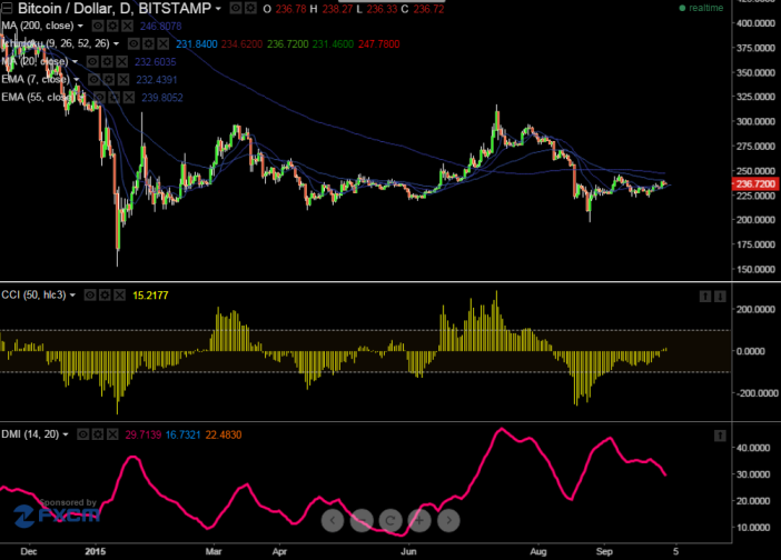 - BTC/USD is facing strong support around $220 and any further weakness only below $220 level. It is currently trading at $224.95. Short term trend is weak as long as resistance $235 holds.