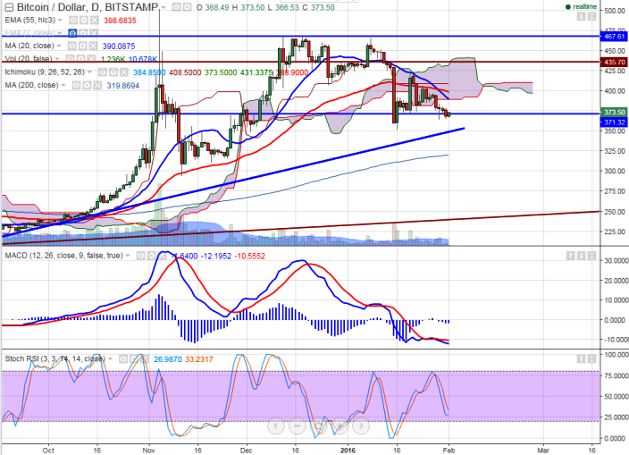 BTC/USD has slightly recovered after making a low of $363. is trading around $373.