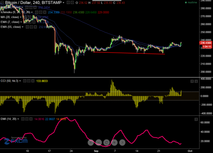BTC/USD is facing strong support around $220 and any further weakness only below $220 level. It is currently trading at $224.95. Short term trend is weak as long as resistance $235 holds.