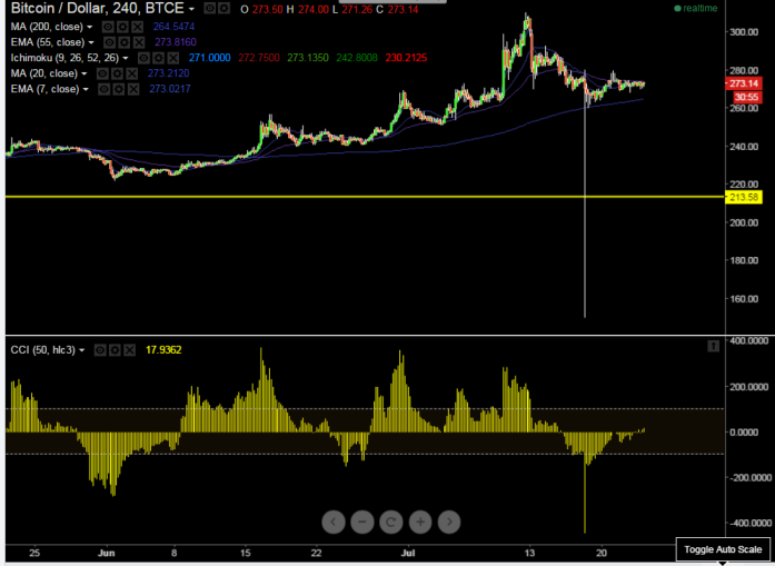 - BTC/USD has broken major support $270 and it confirms short term weakness, a decline till $258 (200 day 4HMA) cannot be ruled out.