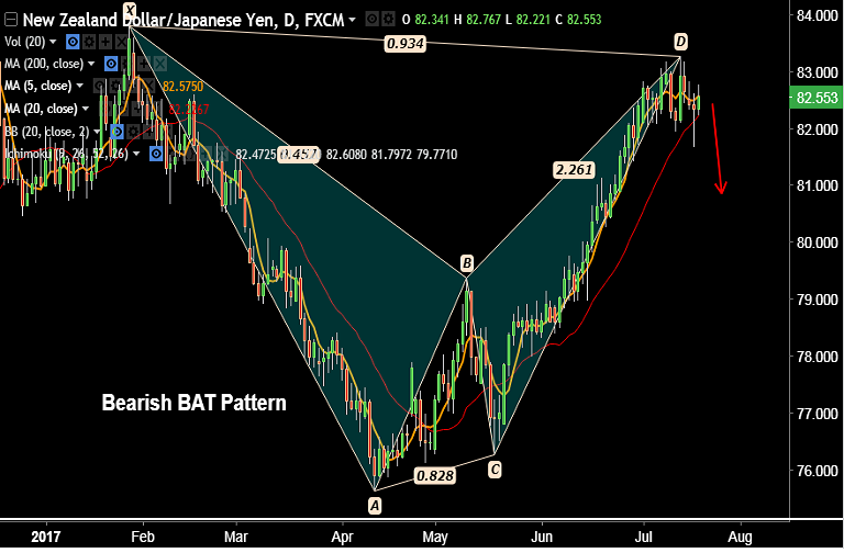 - We see a 'Bearish Bat Pattern' on daily charts, raises scope for downside in the pair.