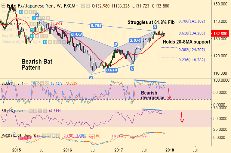 - Our study on EUR/JPY weekly charts shows the pair has been trending sideways since Sept.