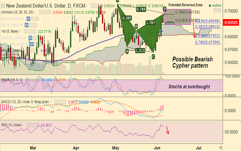- On the technical side, we see a possible 'Bearish Cypher' pattern on NZD/USD daily charts.