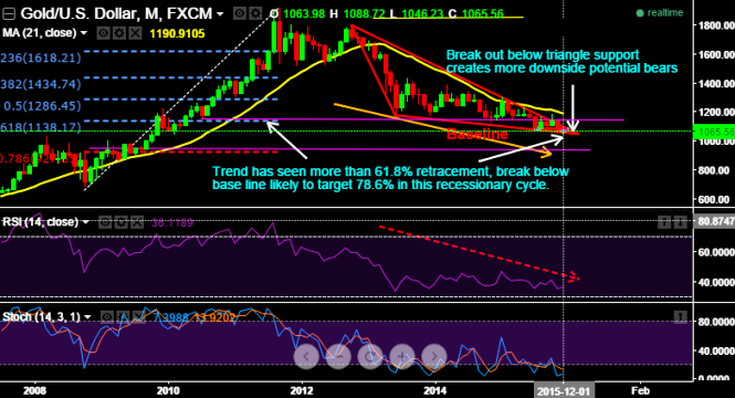 No doubt about the baseline of gold's descending triangle pattern holding strong support but we believe, often and often we see bears trimming golds recent gains.