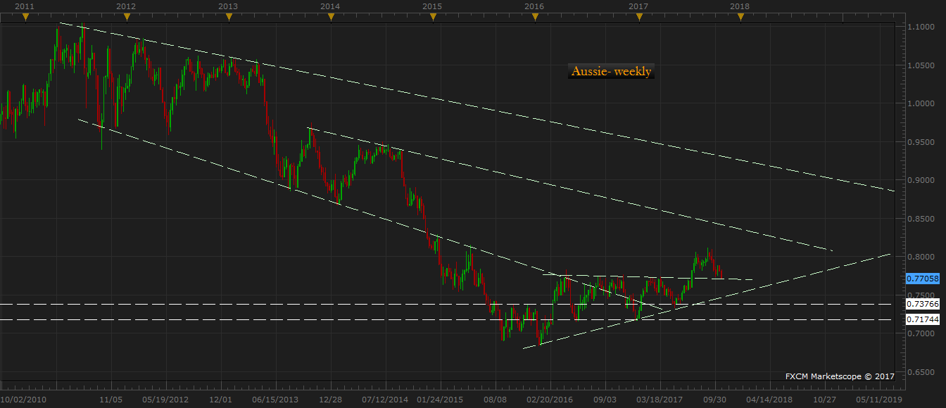 0.75 area is likely to be crucial. Aussie is currently trading at 0.77. Kindly note, all lines are drawn based on closing price.