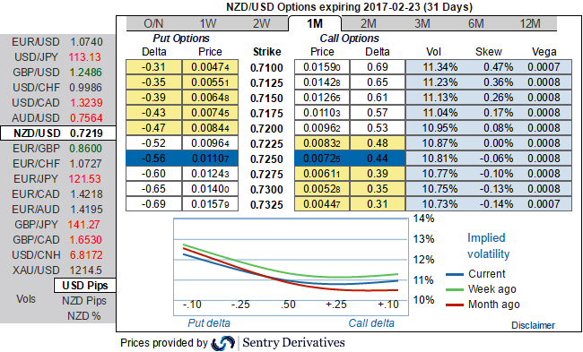 Well, to mitigate the further bearish risks, at spot reference 0.7218 we reckon the NZDUSD options strips with narrowed strikes.