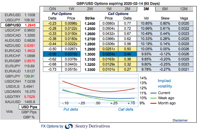 However, the skews and RRs of long-term remain cautious about hedging of bearish risks that encompasses the above stated events (UK elections and Brexit deadline). Courtesy: Sentrix & Saxo