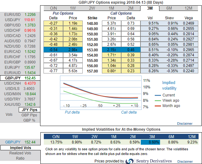 The aggressive volatility investors want to capture GBP should consider buying ATM put instruments and/or being long of the smile convexity, against ATM volatility. Thus, ATM strikes are perceived to be more conducive than the OTMs.