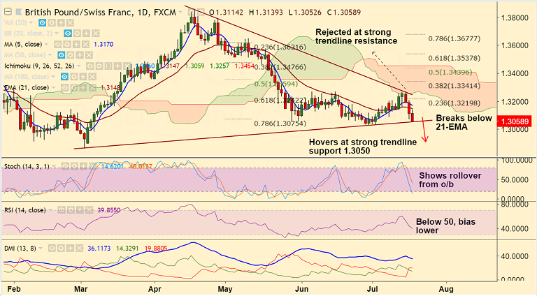 - GBP/CHF is extending weakness after break below 21-EMA, bias lower.