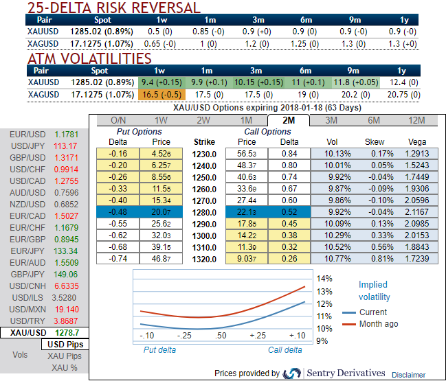 Rationale: Let’s glance on sensitivity tool, the bullish neutral risks reversals indicate upside risks in underlying spot gold prices, while lower implied volatilities with well-balanced positively skewed IVs signify the put writers’ advantages.