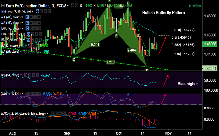 - Bullish Butterfly formation seen on EUR/CAD daily charts.