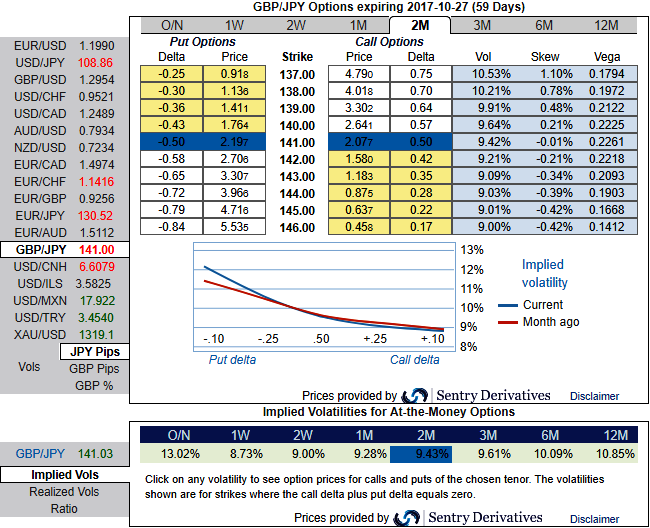 The aggressive volatility investors want to capture GBP should consider buying ATM put instruments and/or being long of the smile convexity, against ATM volatility.