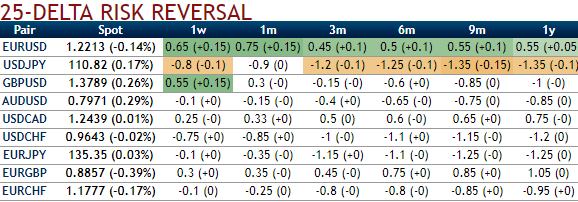 The implied volatility of ATM contracts of USDJPY is trading at around 7.28-7.62% for 1-3m tenors, as the delta risk reversals flashing up progressively with negative numbers that signify the hedging sentiments for downside risks over the period of time, this appears to be conducive for put option holders. Positively skewed IVs of 3m tenors are also of the same indication.
