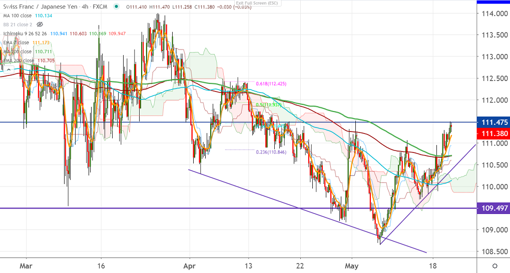 The pair is facing strong resistance at 111.52 and hourly close above that level targets 112.50/114. The decline from 113.99 will end at 108.67 only if it breaks 112.50. The immediate support stands at 110.69 (200- 4H MA) and breaks below will drag the pair down till 110.14/109.90/109.50.