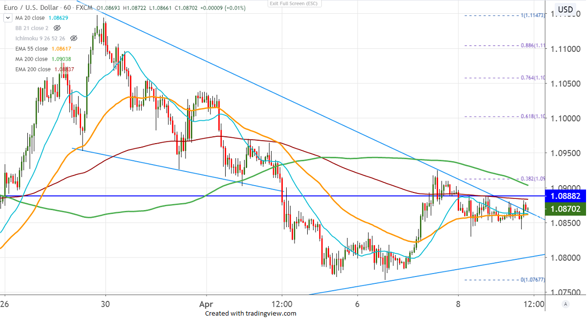 The slight decline in the number of new cases and deaths in Italy and Spain is supporting Euro at lower levels. Any break above 1.09250 high made on Apr 7th will take the pair to next level till 1.09680/1.1000.