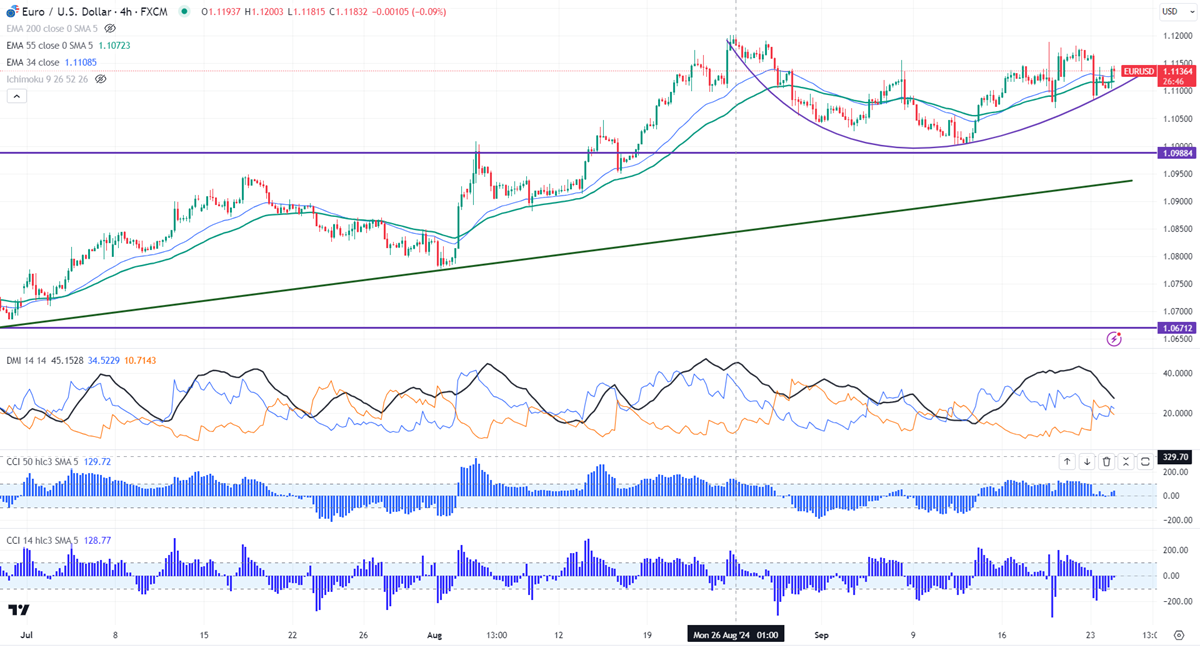 The pair trades above short-term (34 AND 55 EMA) in a 4-hour chart. Major resistance to watch- 1.11554/1.1168/1.1200. Bullish continuation only above 1.12050.