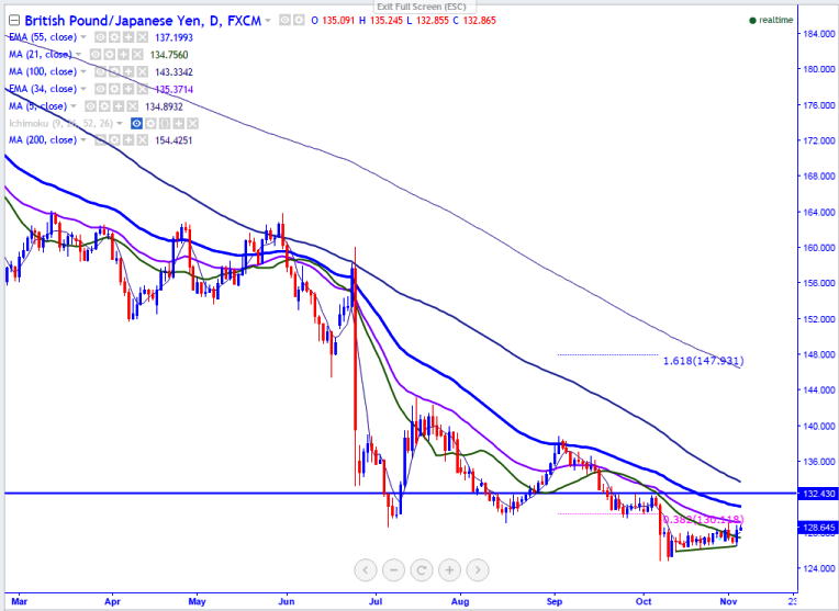 - GBP/JPY should break above 34- day EMA for further bullishness. So slight bullishness can be seen only above 129.16 and any break above targets 130.11/132.