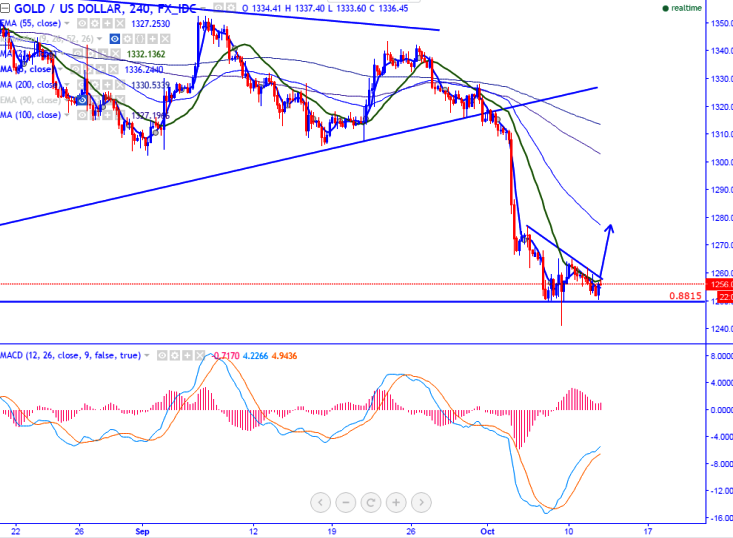 - On the higher side, minor trend line resistance at $1260 will be acting as near-term resistance and any break above targets $1265/$1278 (55- 4 H EMA) in the short term.