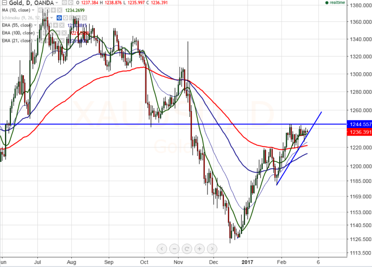 - Gold major resistance is around $1245 (200- WMA) and any break above targets $1262 (200-day MA)/ $1278 (61.8% retracement of $1375 and $1122) is likely.