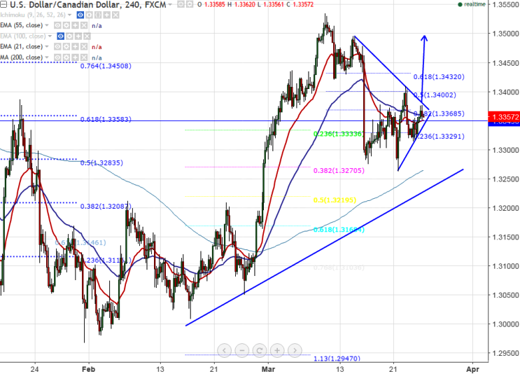 - USD/CAD has recovered sharply after making a low of 1.32635 on Mar 21st 2017 low. It is currently trading around 1.33587.