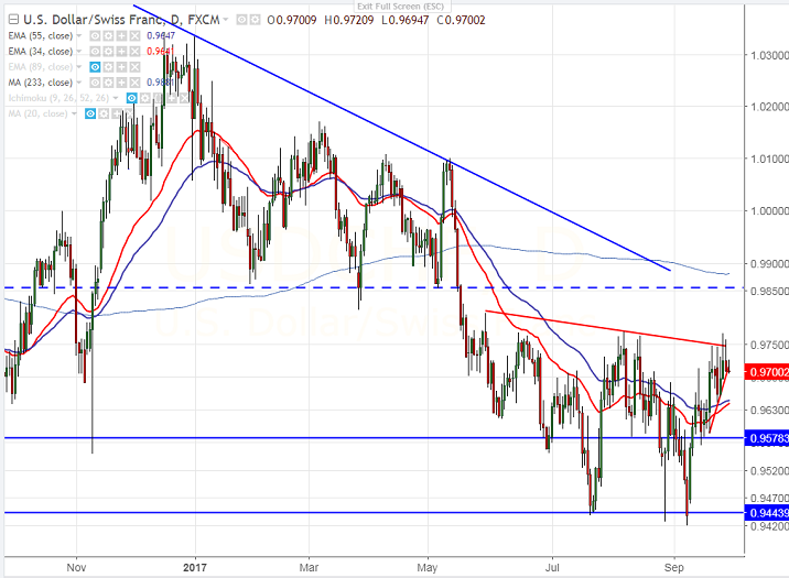 - The near term resistance is around 0.97730 (Aug 8th 2017 high) and any convincing break above will take the pair to next level till 0.9808/0.9845/0.9900.
