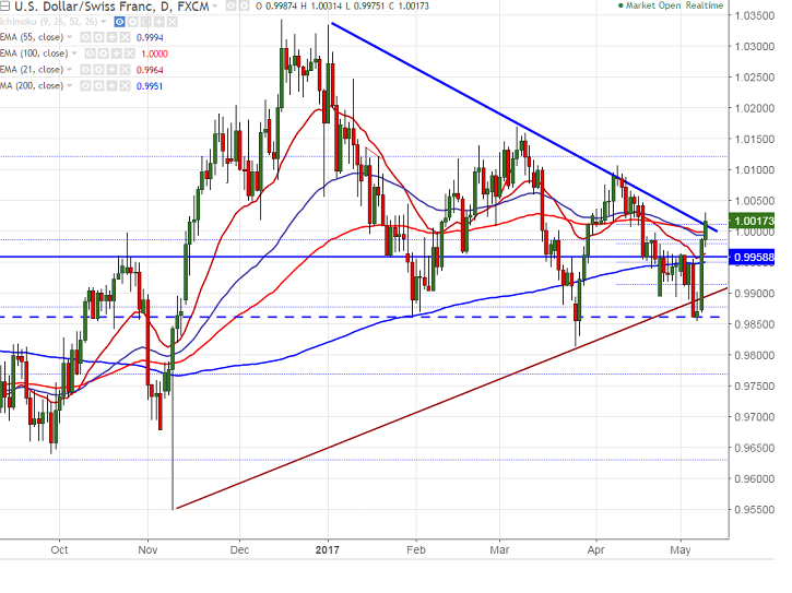 - The decline from 1.0107 has come to end as the pair trades above 1.000 and a further jump till 1.01070 is possible. The minor resistance is around 1.0070. Any break above 1.01078 high formed on Apr 10th 2017 will take the pair till 1.0170 (mar 3rd 2017 high).